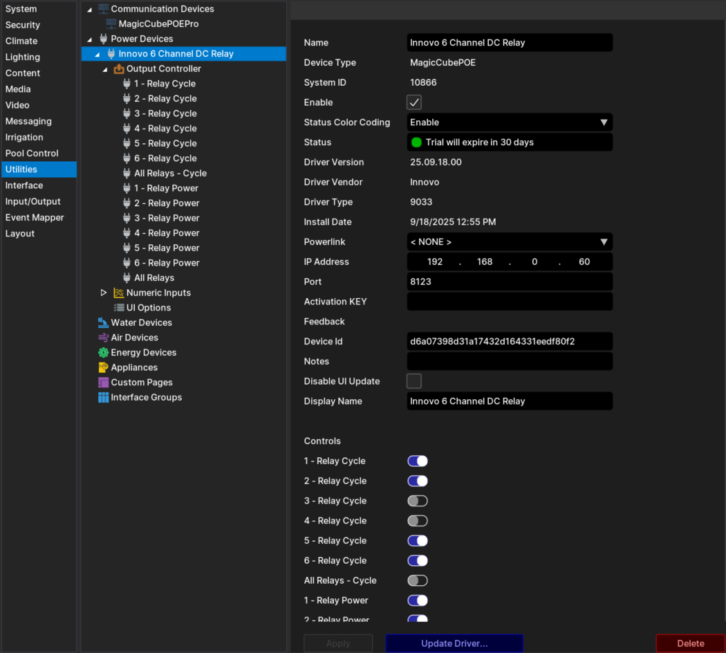 The driver relies on a static IP address for each Magic Cube device. Assign a Static IP address using DHCP reservations in your router. If the device IP address changes, then change it manually in the Elan Configurator