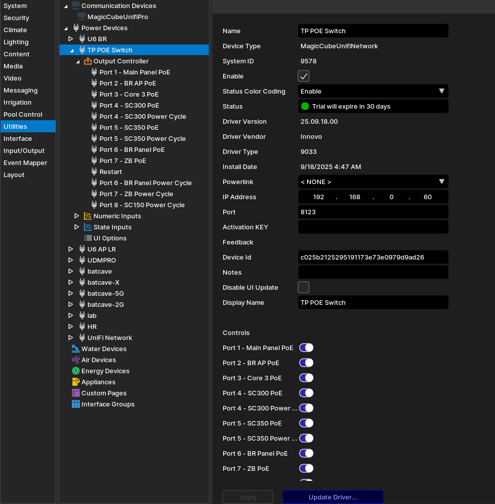 The driver relies on a static IP address for each Magic Cube device. Assign a Static IP address using DHCP reservations in your router. If the device IP address changes, then change it manually in the Elan Configurator